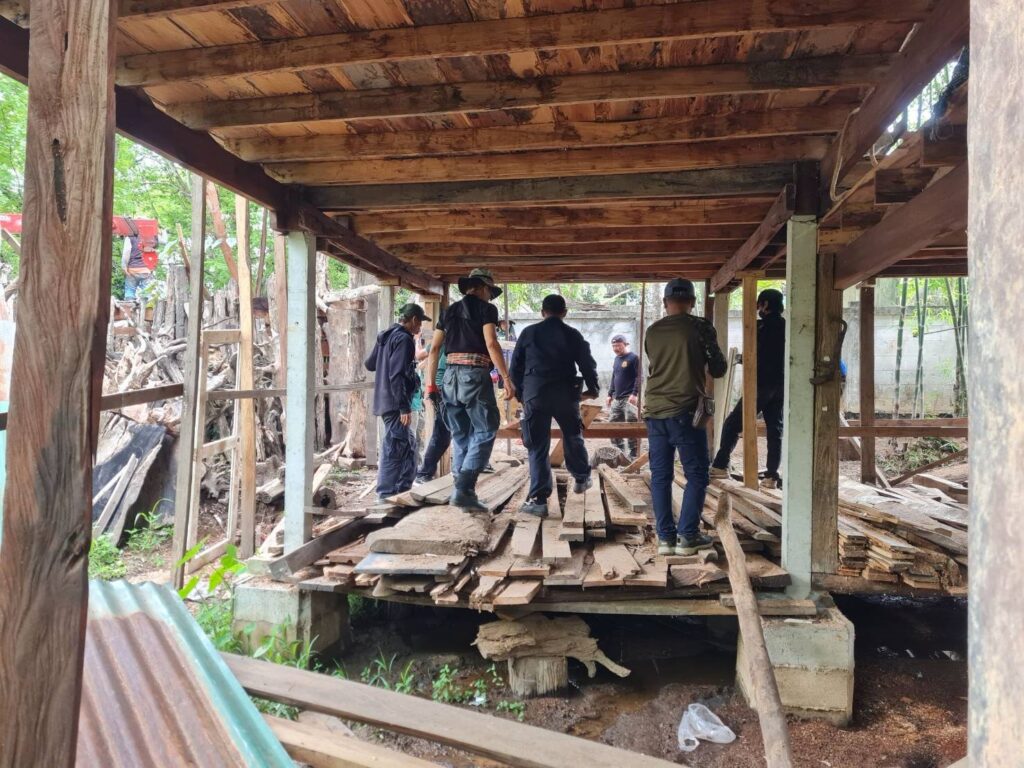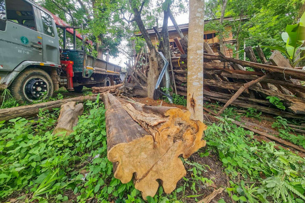ผลการตรวจสอบพบไม้กระยาเลย รวมทั้งสิ้น 91 แผ่น/เหลี่ยม/ท่อน ปริมาตรรวม 1,878 ลูกบาศก์เมตร พร้อมด้วยเครื่องมือและอุปกรณ์ที่เชื่อว่าใช้ในการกระทำผิด ได้แก่ เลื่อยโซ่ยนต์จำนวน 2 เครื่อง, แผ่นบังคับโซ่ (บาร์) 1 แผ่น, โซ่ติดฟันเลื่อย 1 เส้น, กบไสไม้ 2 เครื่อง, เครื่องหินเจียร 1 เครื่อง, เครื่องเป่าลม 1 เครื่อง และเลื่อยวงเดือน 3 เครื่อง